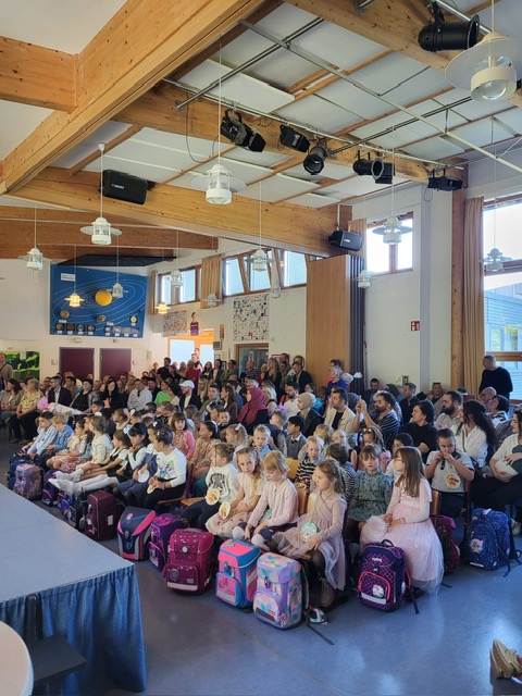 Voll neuer Eindrücke kehrten die frisch gebackenen Schulkinder zu ihren Familien zurück und zeigten stolz ihr neues Klassenzimmer. Außerdem bot sich die Gelegenheit, diesen besonderen Moment mit der neuen Klassenlehrerin und der Familie als Erinnerungsfoto festzuhalten – ein emotionaler Start in die gemeinsame Schulzeit.